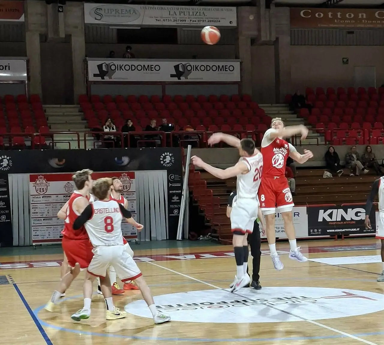 Il momento è duro sul piano dei risultati, ma ora ci sono più giorni per lavorare con intensità e farsi trovare pronti alla gara da non fallire, quella di domenica 29 al PalaElettra (ore 18) contro Canusium. Nel prossimo turno, infatti, l'Amatori Pescara osserverà la giornata di riposo imposto dal calendario a ogni squadra della Division e c'è tanto su cui riflettere dopo il ko di Jesi per 69-64 (17-20, 40-38, 56-48), condizionato anche da una direzione arbitrale sin troppo casalinga negli episodi dubbi. Così coach Di Iorio sull'ultimo match e sulle prospettive di squadra: “Non posso che dire bravi ai miei ragazzi perchè l'atteggiamento di Jesi è stato super dal primo all'ultimo minuto della partita. C'è stata la reazione che avevamo chiesto dopo la sconfitta con Forlimpopoli. Siamo partiti in modo super, siamo riusciti a correre e a passarci la palla e Jesi è andata in difficoltà. Poi le cose sono cambiate, Jesi è stata brava ad abbassarci i ritmi e noi meno bravi a muovere la palla e ad andare dove volevamo. L'atteggiamento positivo in difesa ci ha consentito di restare attaccati alla partita. Poi nel terzo quarto, mi dispiace dirlo, gli arbitri hanno inciso in questa sconfitta. Lo testimonia il fatto che sono stati fischiati 24 falli a noi e 13 a loro, con 26 tiri liberi contro 14, e che quando abbiamo fatto fallo sistematico non è stato fischiato anche quando un giocatore di Jesi alzava la mano per dichiarare il fallo. Ci sono state insomma tante situazioni dubbie. Questo però non ci deve offuscare il giudizio sul fatto che non siamo riusciti a cambiare l'inerzia della partita, perchè più volte non siamo stati bravi a fare canestro quando abbiamo costruito buoni tiri piedi per terra e abbiamo rinunciato a degli uno vs uno che potevano portarci vantaggio. Sono soddisfatto per l'atteggiamento dei ragazzi, mi ripeto, ma ovviamente dispiaciuto per il risultato che non è arrivato perchè per la prestazione fatta meritavamo di più. Abbiamo ora la settimana di riposo e dobbiamo ricaricare velocemente le energie perchè ci aspetta un finale di campionato decisivo”.