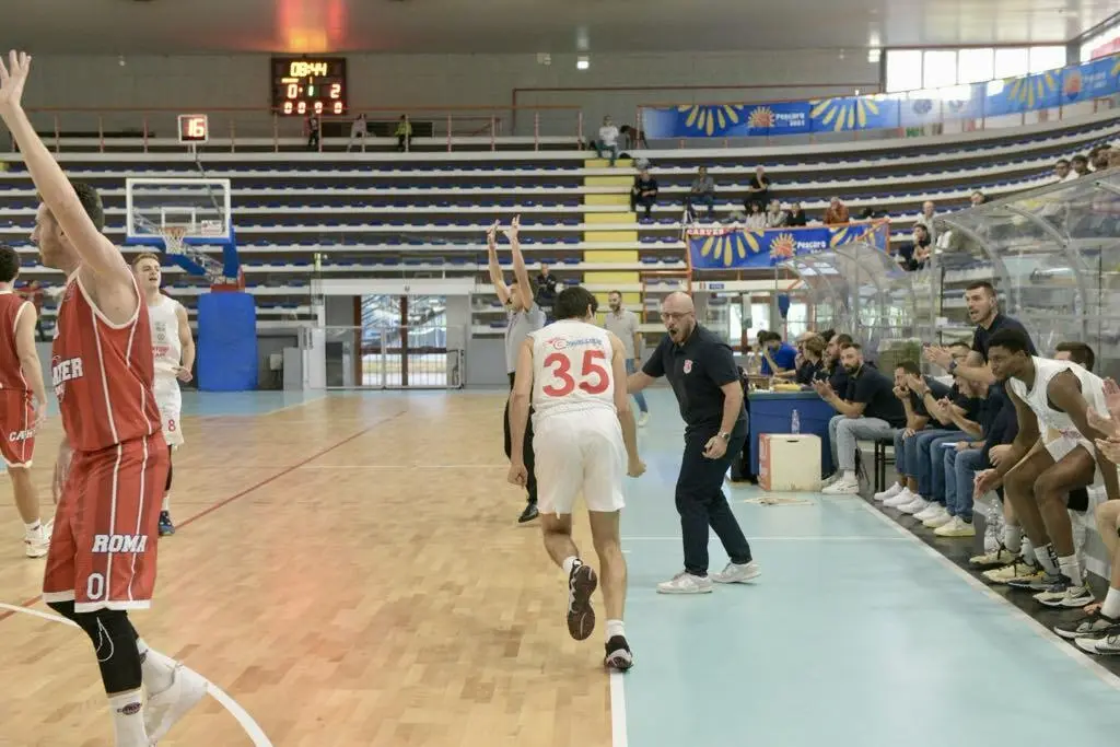 La gara. Per la terza palla a due della stagione coach Davide Gabriele sceglie il quintetto formato da Romondia, Guido, Buscaroli, Giacomi e Cocco. Alessandro Guido buca subito la retina capitolina con una tripla che strappa applausi convinti al pubblico del PalaElettra, dando il via ad un primo quarto dai ritmi molto alti. L'Amatori fa circolare benissimo palla e regala sprazzi di bel basket e dopo 5' conduce 14-7. Buscaroli sembra in gran serata e punisce Roma dall'arco,, con la squadra di coach Finarelli che esaurisce a metà quarto il bonus falli. La seconda palla rubata e trasformata in 2 punti in transizione solitaria da Giacomi (la prima era stata di Buscaroli) è accolta dal boato dei tifosi della squadra della città di Pescara, che quando grazie ad un tentacolare Cocco si porta sul 18-10 con 3 minuti ancora da giocare induce la panchina ospite a chiamare il break. Al rientro dal minuto di sospensione Stella si ripresenta con una bomba di Ntsourou a preannunciare battaglia ed allora la panchina pescarese manda in campo gli agonisti Di Donato e Dervishi per alzare ancora l'intensità. C'è anche Chon Allier nel quintetto della squadra della città di Pescara e Romondia fa 2/2 dalla lunetta dopo un antisportivo comminato a Doumbia a mantenere due possessi pieni di distacco nel punteggio. Il finale di tempo, con Di Giovanni ed Osarenkohe in campo, vede prima una tripla aperta di Allier a segno e poi l'Amatori fallire tre possessi consecutivi che non permettono di portare il divario in doppia cifra. I primi 10' di contesa vanno così agli annali sul parziale di 24-15. Il secondo periodo si apre con il capitano a colpire dai 6,75 per l'allungo sul +12 e Stella che si mette subito a zona. Dal cambio di difesa i capitolini traggono energia in attacco e, agevolati anche da qualche errore di gestione pescarese, provano a ricucire lo strappo ma l'asse Guido - Buscaroli (22 punti in due al 15') ricaccia sotto Stella e firma il nuovo massimo vantaggio sul 38-24. E' in questo frangente che Fanti, comunque già gravato di 3 personali, che inizia a fare sul serio. Stavolta è l'Amatori a esaurire presto il bonus, con 4'38'' ancora da giocare prima della pausa di metà gara, ma la squadra ospite ne approfitta per accorciare in modo sensibile. All'intervallo lungo si va così sul progressivo di 49-38. 44%, vale a dire 8/18, da 3 per gli idoli di Pescara.